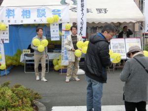 支部は、例年どおりブース(小間)を借り受けて、無料相談会を実施しましたが、あいにく、この日は、朝から今にも降り出しそうな空模様で、お昼頃までは、どうにか降らずに済んだのですが、午後には、結局、少しずつ降り出してしまいました。
